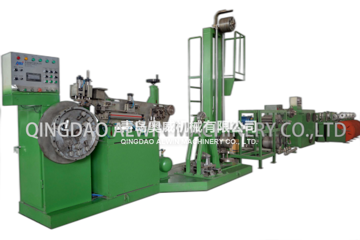 The machine is production line of bead ring for tire manufacture,suitable for bead with rectangular or square cross section structure. The main structure of this machine is composed by bead wire let-off device, bead wire polishing heating device, grommeting extrusion, cooling traction storage device, length fixing&cutting device and bead chuck forming equipment, adopt PLC(program control)set circling numbers, bead ring free for cloth wrapping, automatic discharge.
